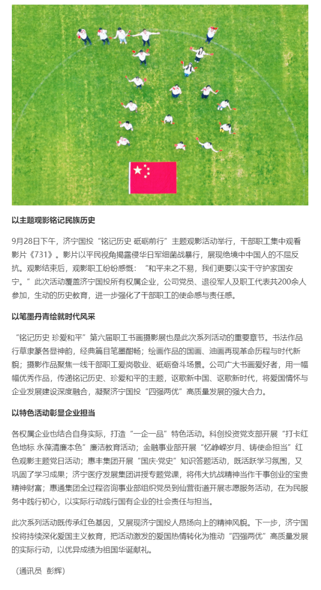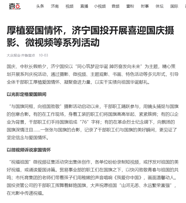 原鏈接:厚植愛國情懷,濟寧國投開展喜迎國慶攝影、微視頻等系列活動